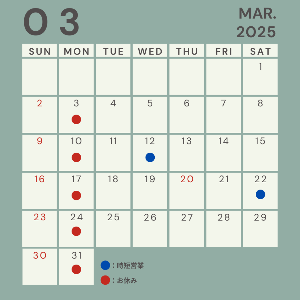 3月の営業日程です