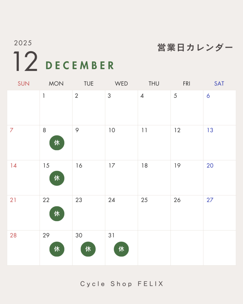 12月営業日程のご案内